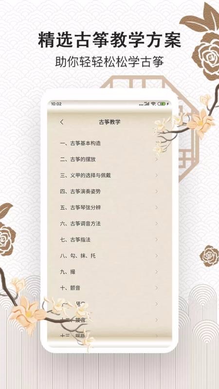 4、提供了古筝教学方案,按照章节进行展示,分类学习古筝内容;