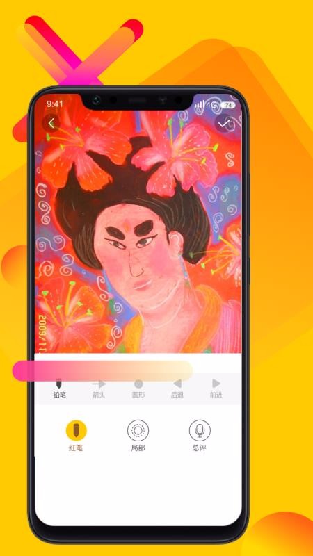 5、可以进行语音点评,通过录音的形式,完成作品点评,也可以进行红笔标注;