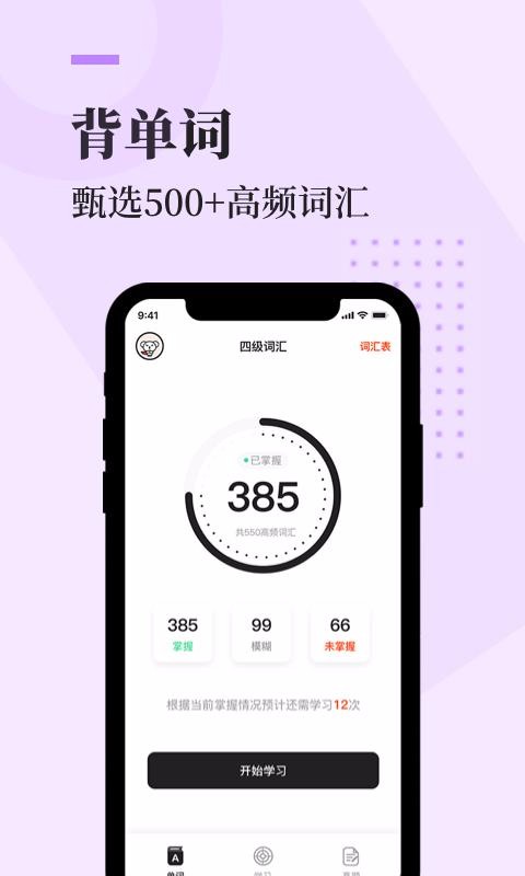 5、甄选四六级考试词汇,也汇集了高频词汇,在线就可以背单词;
