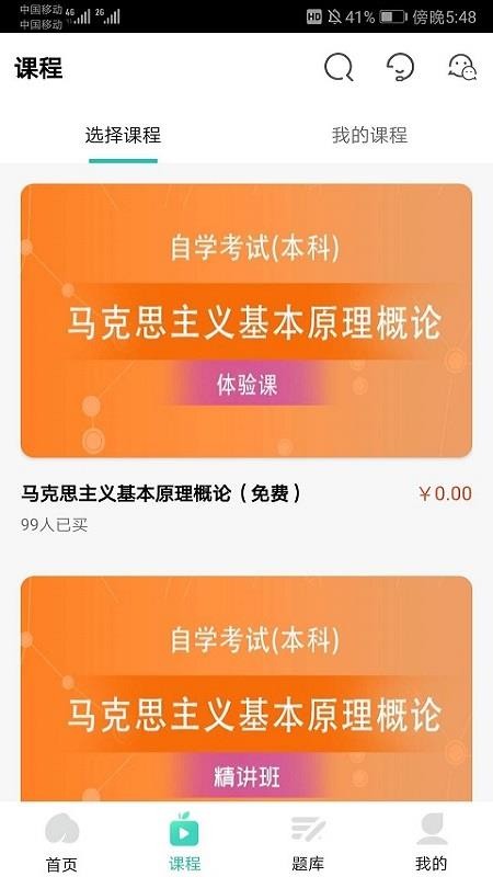 2、用户在软件中可以清晰看到各个课程的价格和已买人数等信息;