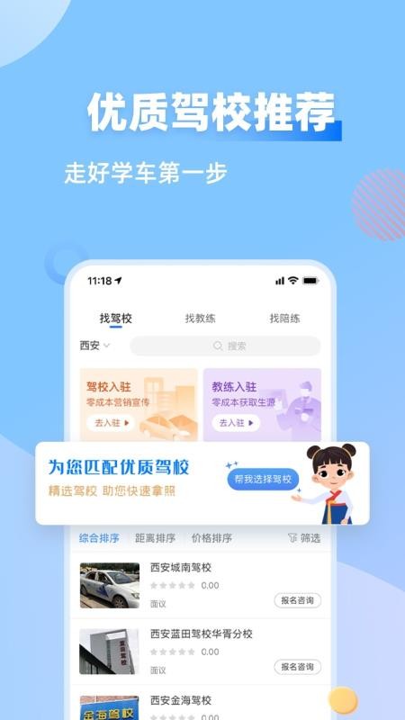 4、在这里,用户能够看到附近的各种驾校信息,从而更轻松的进行报名;
