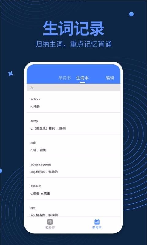 4、自动归纳生词,云端存储生词,让用户进行重点记忆和背诵;