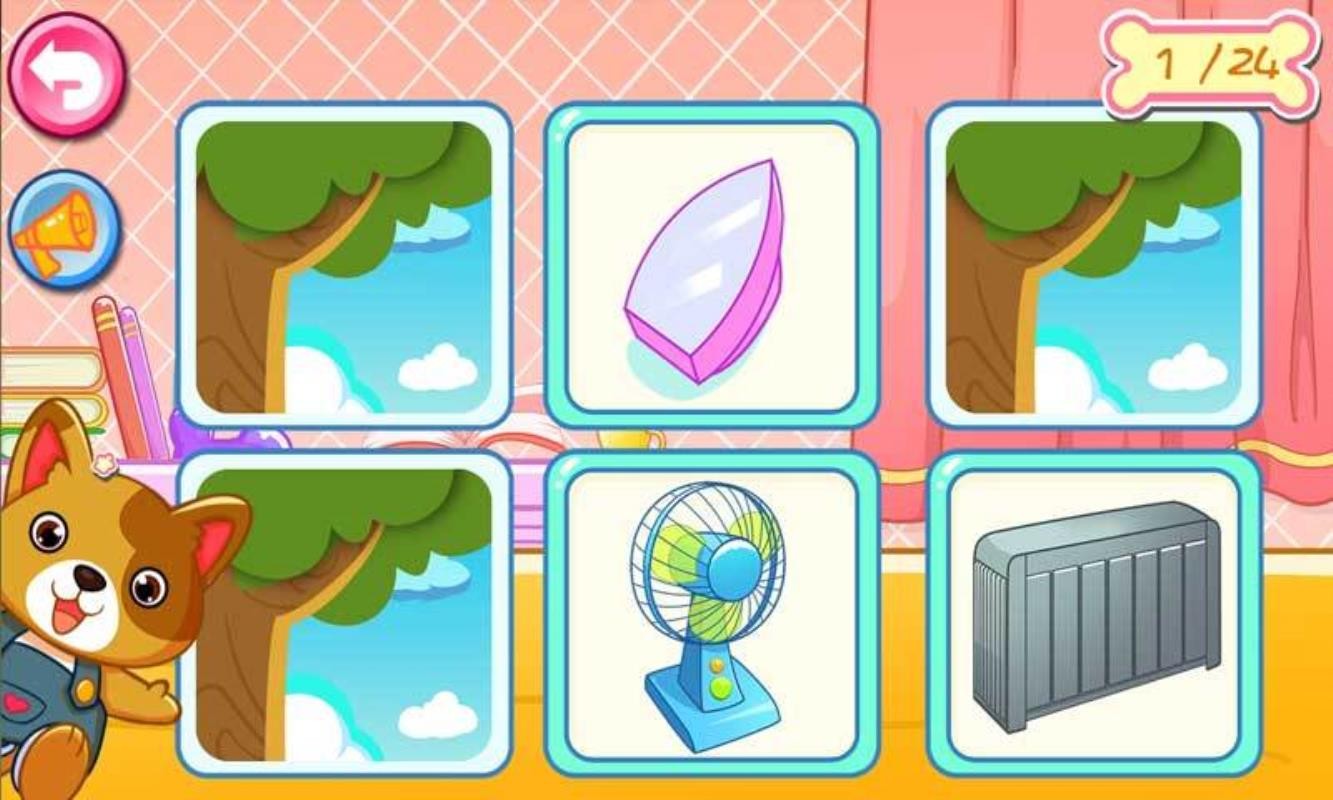 4、根据语音提示,找出并点击正确的家电,考验孩子的认知能力;
