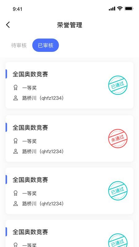 5、提供荣誉管理版块,让用户看到各个学生的荣誉信息,快速进行审核;