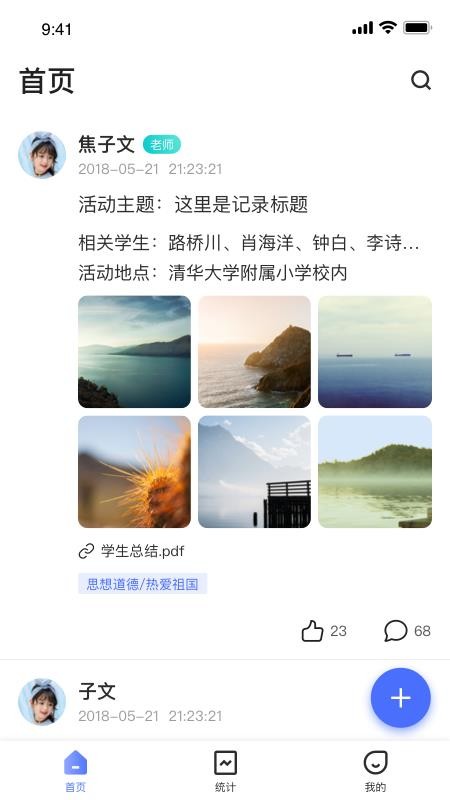 2、在首页中查看各种各样的动态内容,快速了解学生的活动参与情况