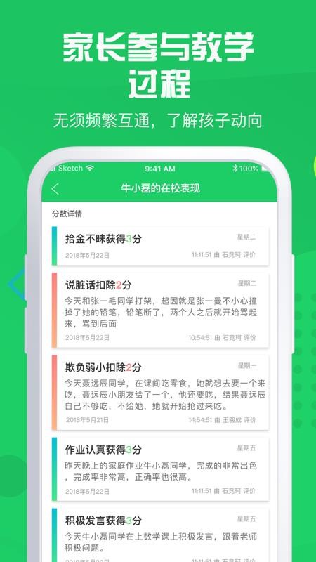 1、能够清楚的记录学生的学习生活情况,实时的展示在平台里,更好的查看;