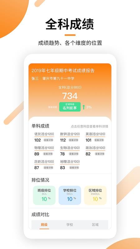 1、为用户清晰显示自己的详细分数和区域等级信息,方便用户了解;