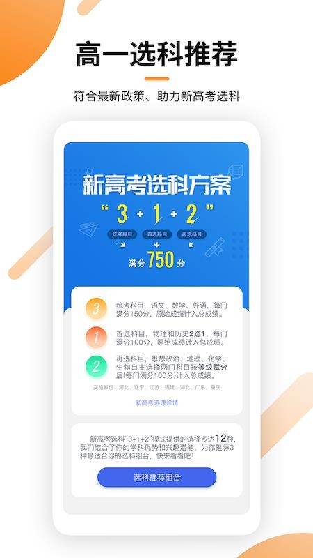 2、在这里,用户能够根据自己的学习成绩快速获取推荐的选科组合,轻松选科;