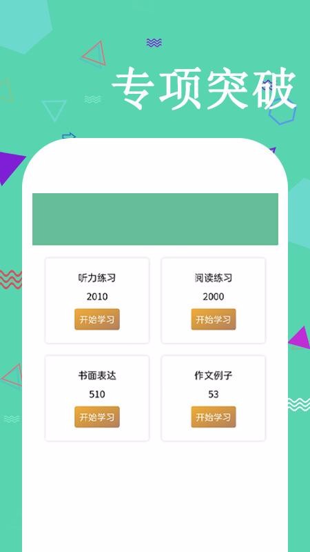 2、随时随地进行专项练习,不断提升听力、阅读、书面表达等能力,也针对性完成学习;