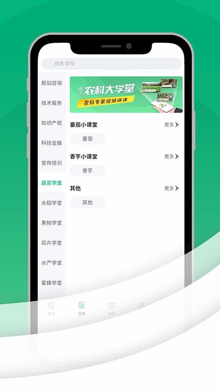 3、还有更详细的课堂分类,比如在蔬菜学堂类别下又划分了番茄以及香芋等类别;