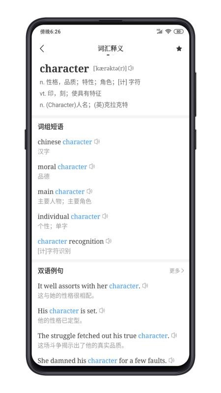5、全面的展示清晰的单词内容,可以实时学习释义、词组短语、双语例句等;