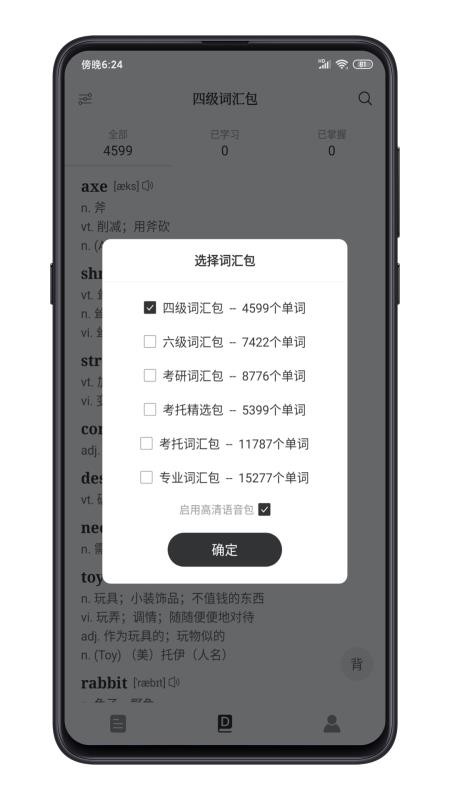 4、拥有海量优质的单词库,及时选择单词学习的词汇包信息,实时背单词;