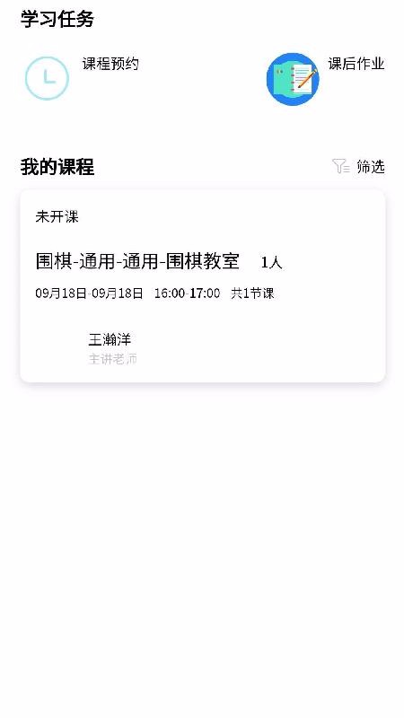 4、在学习任务页面,为用户展示了课程记录、课后作业等功能