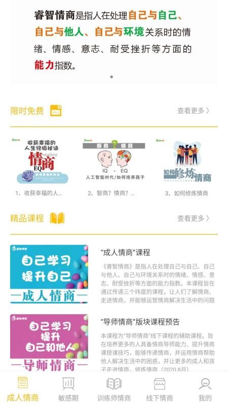 3、可以点击成人课程,就可以实时在线学习相应的情商知识