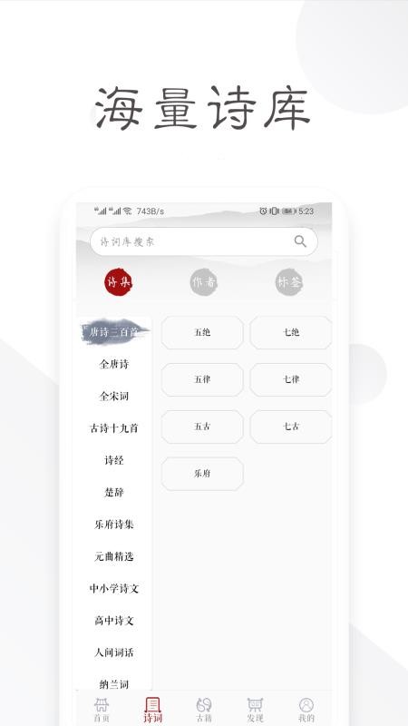 2、可以分类欣赏不同的诗词语句,让用户体验不同的诗歌类型;