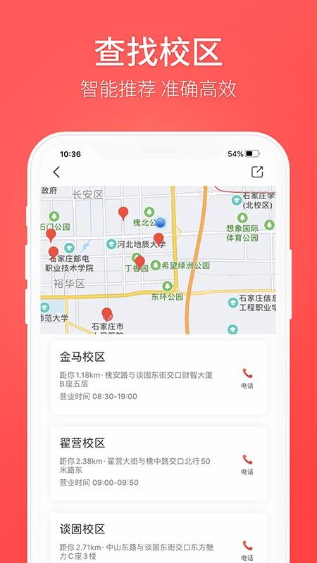 4、用户在软件中能够一键查找各个校区信息,快速了解各校区的详细位置;
