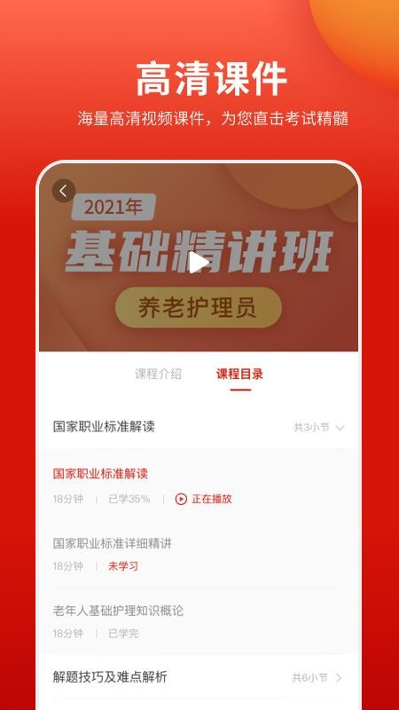 5、打开课程详情,查看详细的课程目录,选择不同的章节开始观看课件
