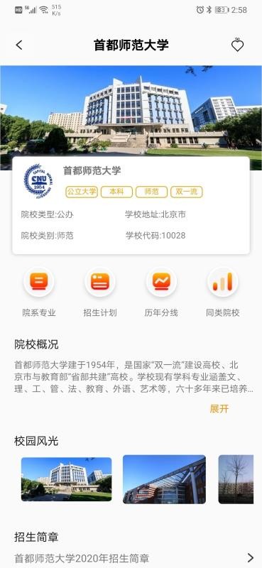 3、进入院校详情,查看院校概况和校园风光,了解院校的详细招生计划和历年分数