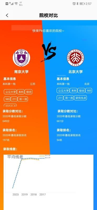 4、为用户提供同类院校版块,帮助用户轻松筛选出同类院校,快速进行对比;