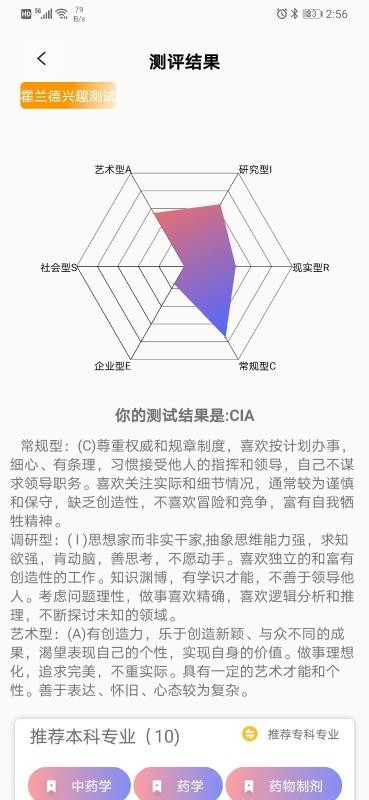 6、提供测评版块,用户可以快速进行性格和职业测评,获取推荐的专业内容;