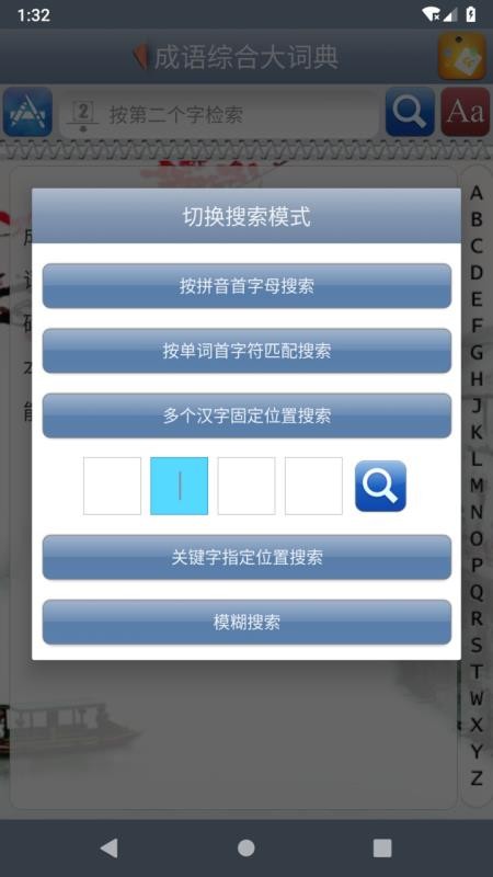 2、可以使用字首进行匹配,快速的找到需要的成语,满足你的需求;