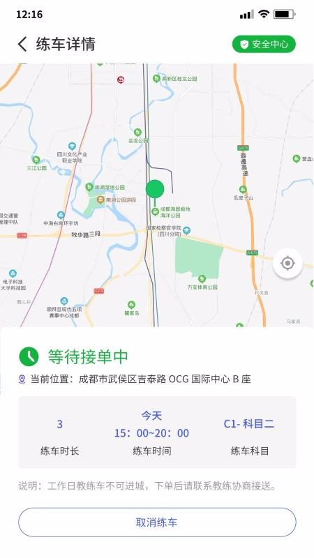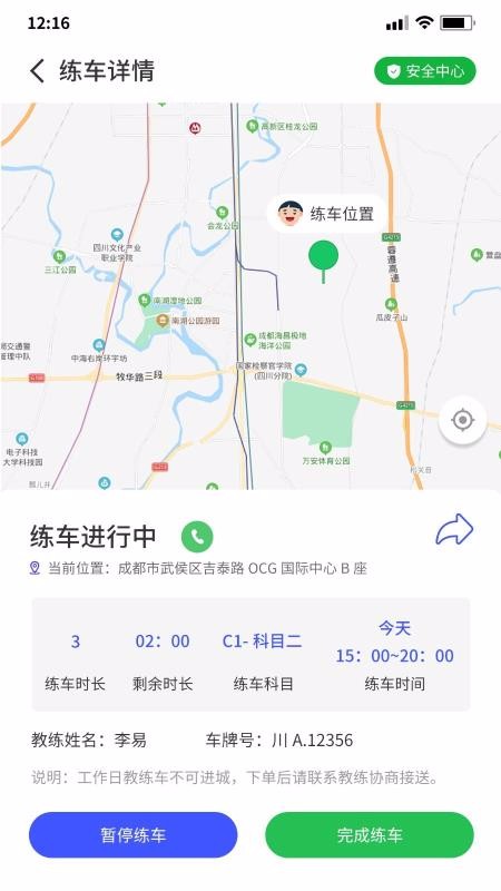1、随时可以查看练车详情,并进行订单处理,比如取消订单、开始练车、完成练车等;