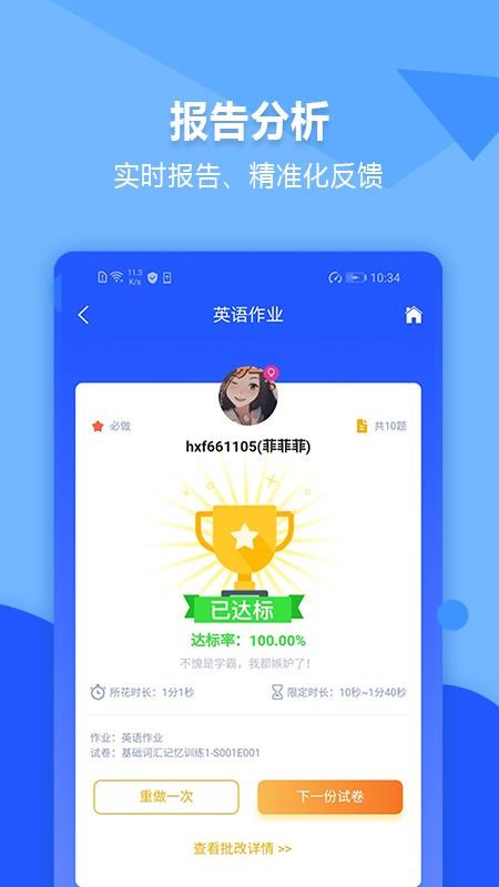 3、进入学习报告页面,立即查看学习实时报告信息,精准反馈内容