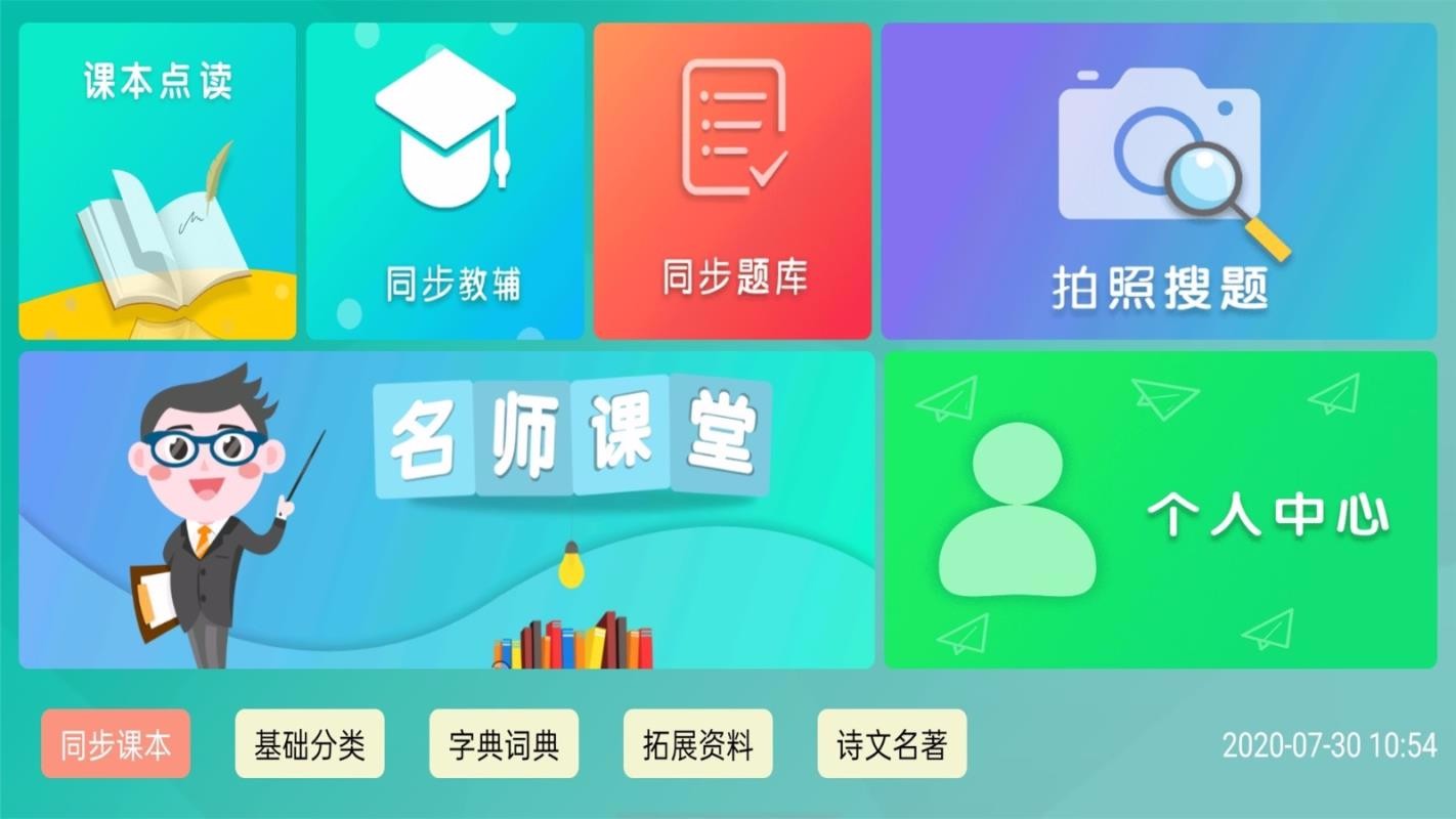 2、进入同步课本页面,可以选择课本点读、同步教辅、同步题库、名师课堂等专区进行查看