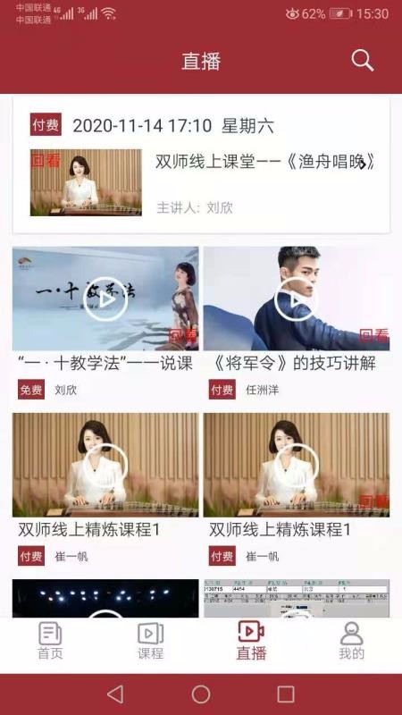 4、在直播页面,为用户展示了各种付费直播,可以选择直播进行观看