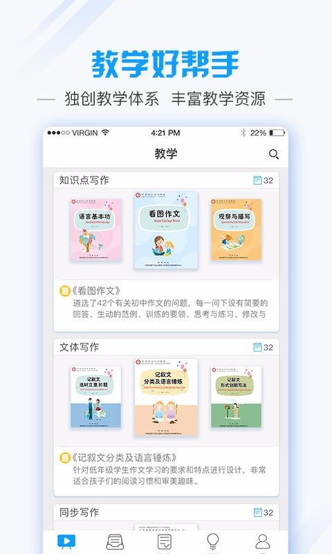 爱语文老师版是专门为老师提供的辅助教学平台,主要服务于语文老师,可以帮助老师获取丰富的教学资源,也让用户更好的管理教学、学生作业、考试试卷等;而且该平台提供了交互式教学场景和方式,可以让老师在线体验闭环式教学,也涵盖了教、学和评三方面,可以帮助老师一站式完成教学管理、知识学习和学生评价;所以,想要更好的完成语文教学,可以下载该软件进行查询和使用,而且该软件也是教学的好帮手,结合独创的教学体系,让老师享受丰富的教学资源,也可以按照该体系进行系统的教学,同时还可以丰富自己的知识含量。
