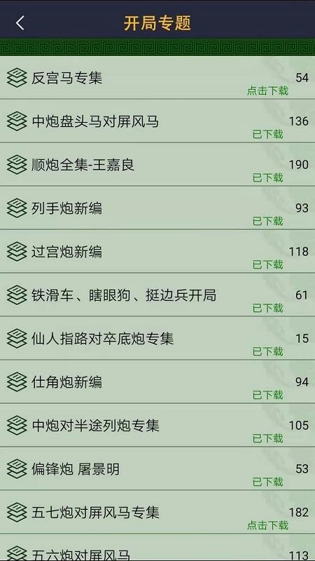 2、收录多样的开局专题棋局资源,上面展示反宫马专集、顺炮全局以及仙人指路对卒底炮专集等;