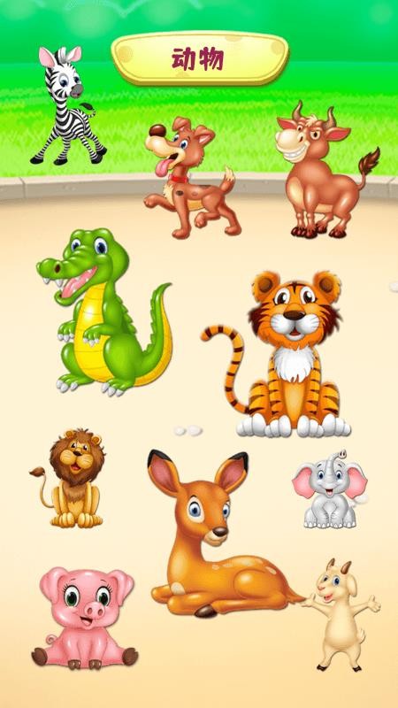 1、卡通的形象展示各种各样动物,可以按照不同的动物形象学习英语;