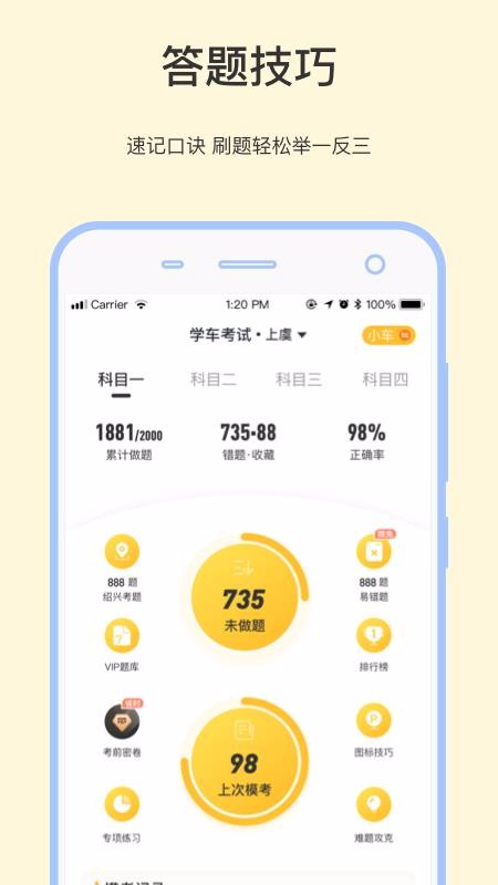 1、支持多种不同的车型驾照学习,除了小车之外还为用户提供了其他车型选择;