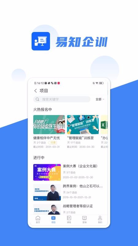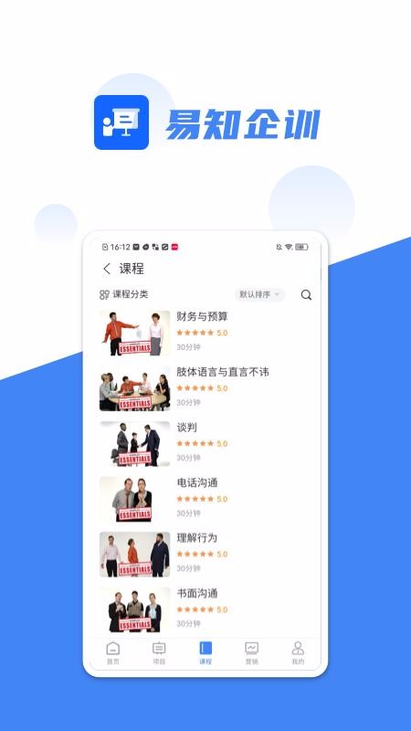 易知企训是一款企业培训学习类服务软件,针对企业内部培训需求开设了课程、培训项目以及营销课程等专区,提供多方面的培训课程资源;里面的课程丰富多样,涵盖各种实用的办公培训课程资源,还有谈判以及语言表达等类型的课程内容,用户能根据企业培训需要选择课程,也可以根据自己的个人提升需要选择相应的课程,这些课程会为用户自动生成相应的学习任务,同时推送到软件首页,让用户每天都能科学的学习并加快学习进度;通过该软件能提高用户丰富的企业工作能力,作为财务人员能提升财务办公技能,营销人员也能提高自己的营销能力。