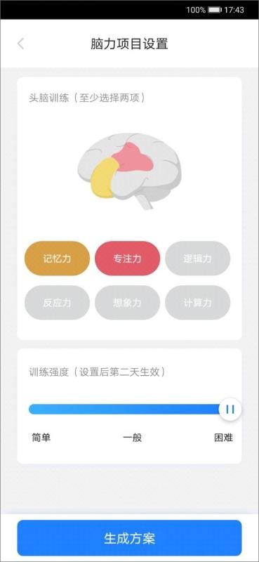 3、个性化的训练方案,在线可以设置训练的能力和难度,生成专属的方案内容;