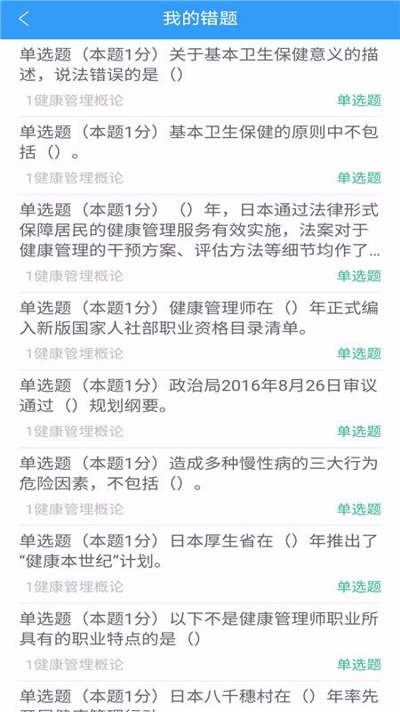 健康管理师考盟是一款考试通关小助手,专门为备考健康管理师的用户设计,不仅给用户带来便捷的备考训练服务,还开设了通知公告、备考指南等服务专区;上面给用户提供了众多类型的课堂知识,除了同步课本里面的专业知识内容外,同时还给用户提供许多实用的课堂内容,比如考试信息介绍、考试技巧干货等多种课堂,让用户能对该考试的情况深入了解,从侧面加深备考用户对考试的印象;这里有非常丰富的题库资源,涵盖课程的同步章节题目内容,同时还收录了历年的考试真题,给用户带来全面的备考服务,致力于帮助成功通过考试。