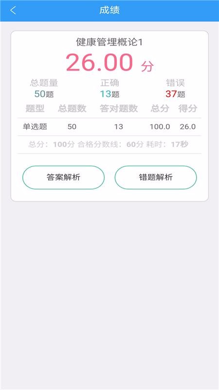 5、丰富的成绩统计分析,成绩结果中展示总题量、正确数量、错误题数等内容;