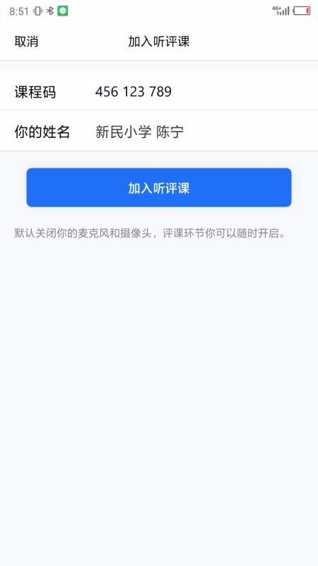 1、一键就可以加入听评课,根据课程码和姓名完成加入,也支持取消加入;