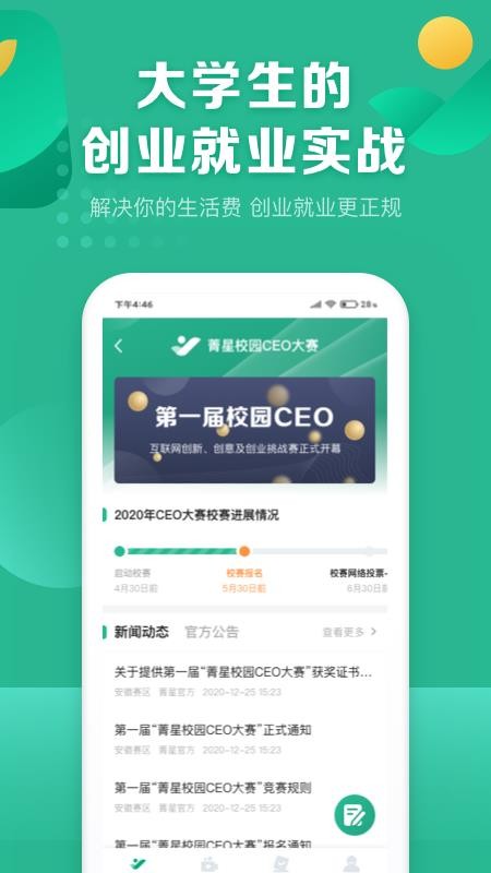 菁星校园是一款为大学生就业提供服务的软件,利用线上的服务方式,为在校大学生提供创新创业机会及就业等服务,让更多的大学生能够更好的定位自己,了解自己的能力,结合自身的实际情况进行创业或者就业,让学生能够轻松的进行使用;平台会为学生题实战演练,让学生在使用的过程中能够提升自己的能力,掌握更多的就业知识,让学生的能够更好的进行学习,得到平台的帮助,快速的解决学生的问题;各种服务功能全部展示在平台里,在线就能够清楚的选择,让学生能够获得优质的服务,随时都能够轻松的进行使用。