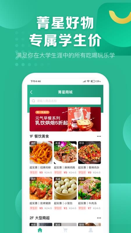 3、提供校园商城,能够解决学生的生活需求,在线能够轻松的进行购买;