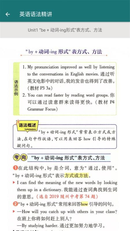 1、知识归纳,整理了重要的句型、语法和短语,可快速查看;