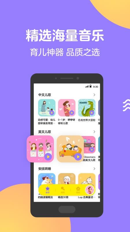 5、收听哄睡的音乐,在睡前可以实时收听 合适宝宝睡觉的音乐,陪伴宝宝入眠;