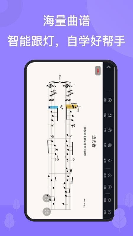 4、海量的曲谱内容,可以查看各种类型的钢琴曲谱,智能跟灯,在线根据曲谱演奏;