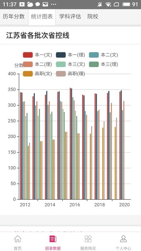 6、拥有统计图表版块,通过图表内容帮助用户分析历年来的省控线分数信息;