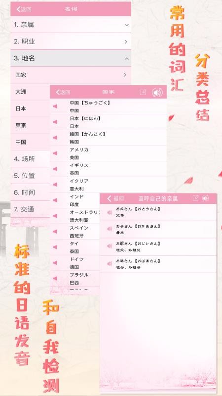 2、学习所有国家表达方式,可以进入到国家学习页面查看不同国家的日语表达方式;