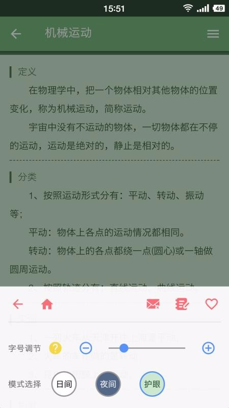 4、自定义调节阅读的字号,还可以切换为日间、夜间或护眼模式进行查看;