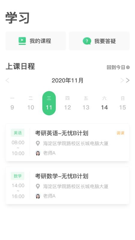 2、在这里,用户能够清晰看到自己的各个课程信息,了解课程安排;