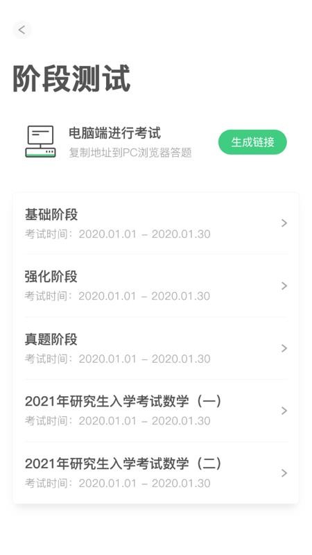 5、提供阶段测试功能,为用户进行不同阶段的测试,帮助用户查缺补漏;
