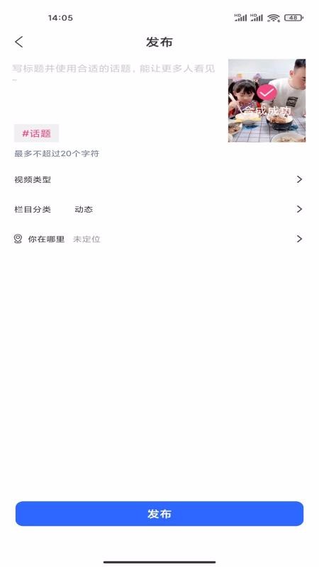 4、提供了发布功能,可以添加话题、图片、视频、定位等完成发布;