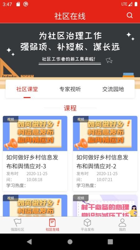 5、在社区课堂界面中,可学习到众多的社区治理知识